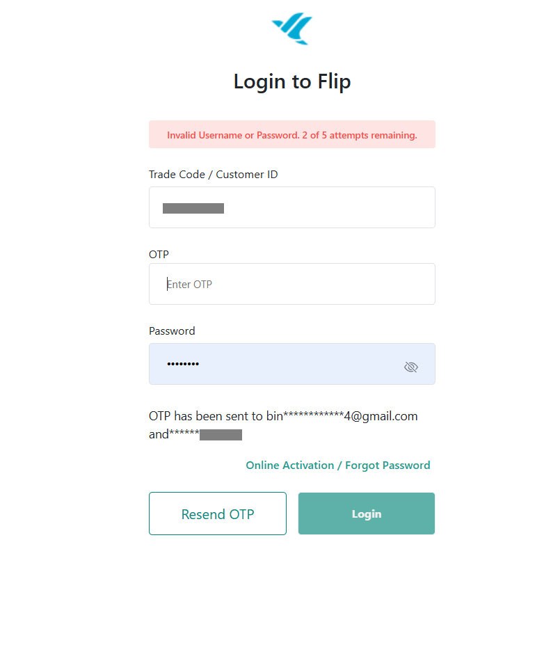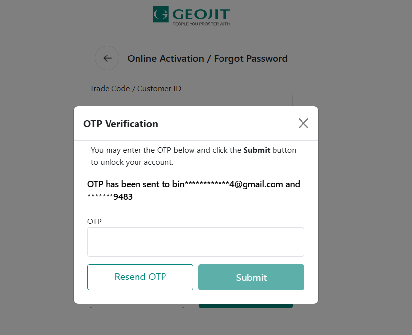 If you attempt to log in to MyGeojit/FLIP using an incorrect password three consecutive times, you will be required to authenticate your login using an OTP sent to your registered email ID or mobile number.