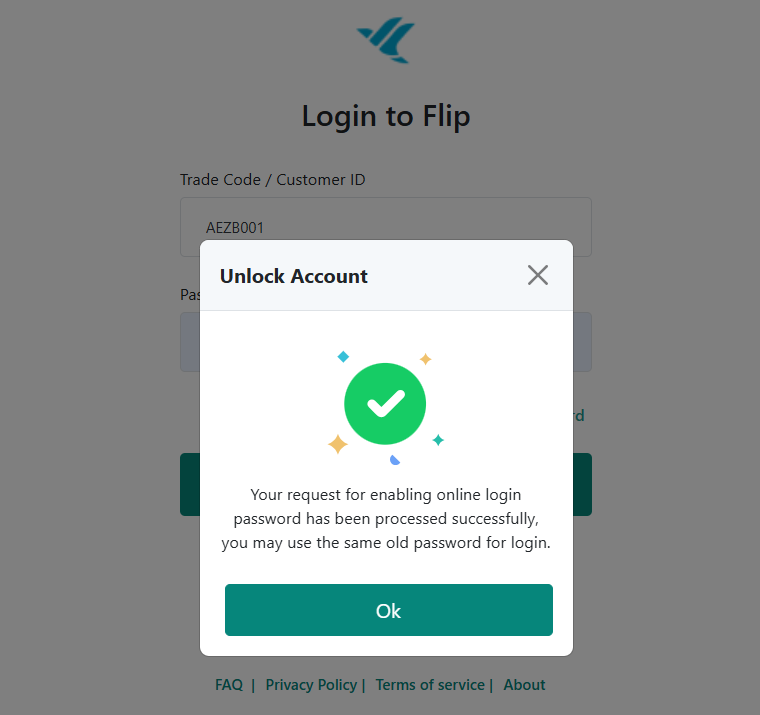 On successful validation of the OTP, your account will be unlocked. You will be able to log in using the existing password.
